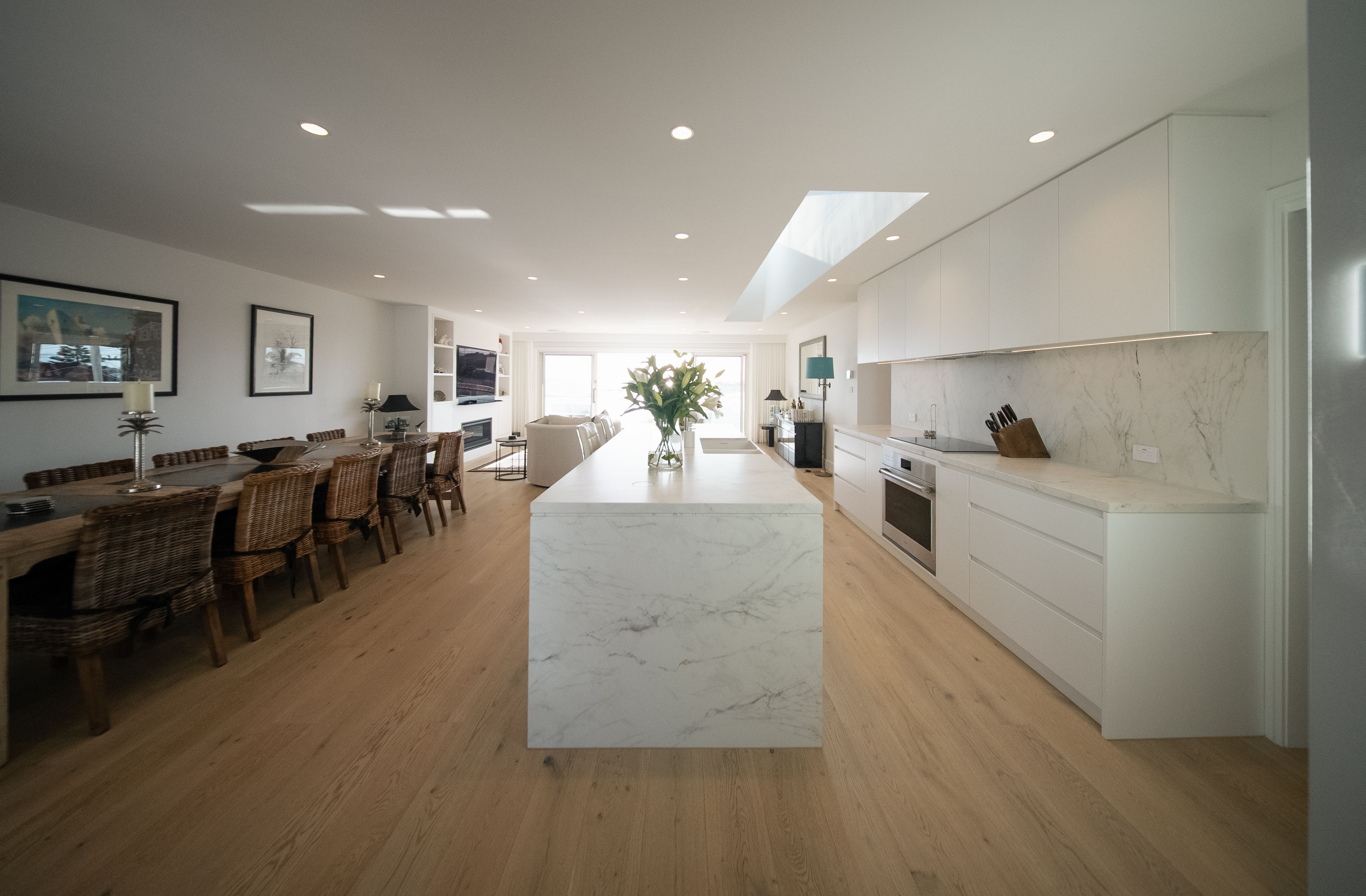 Perched along sought-after Sunset Boulevard, Soldiers Point, this major renovation transforms a dated dwelling into a refined coastal retreat. This home has been reimagined to maximise water views, natural light, and seamless indoor–outdoor living. Expansive open-plan interiors flow effortlessly to generous alfresco spaces, capturing the essence of relaxed waterfront living. Delivered by GTS Constructions, the project showcases exceptional craftsmanship and attention to detail.